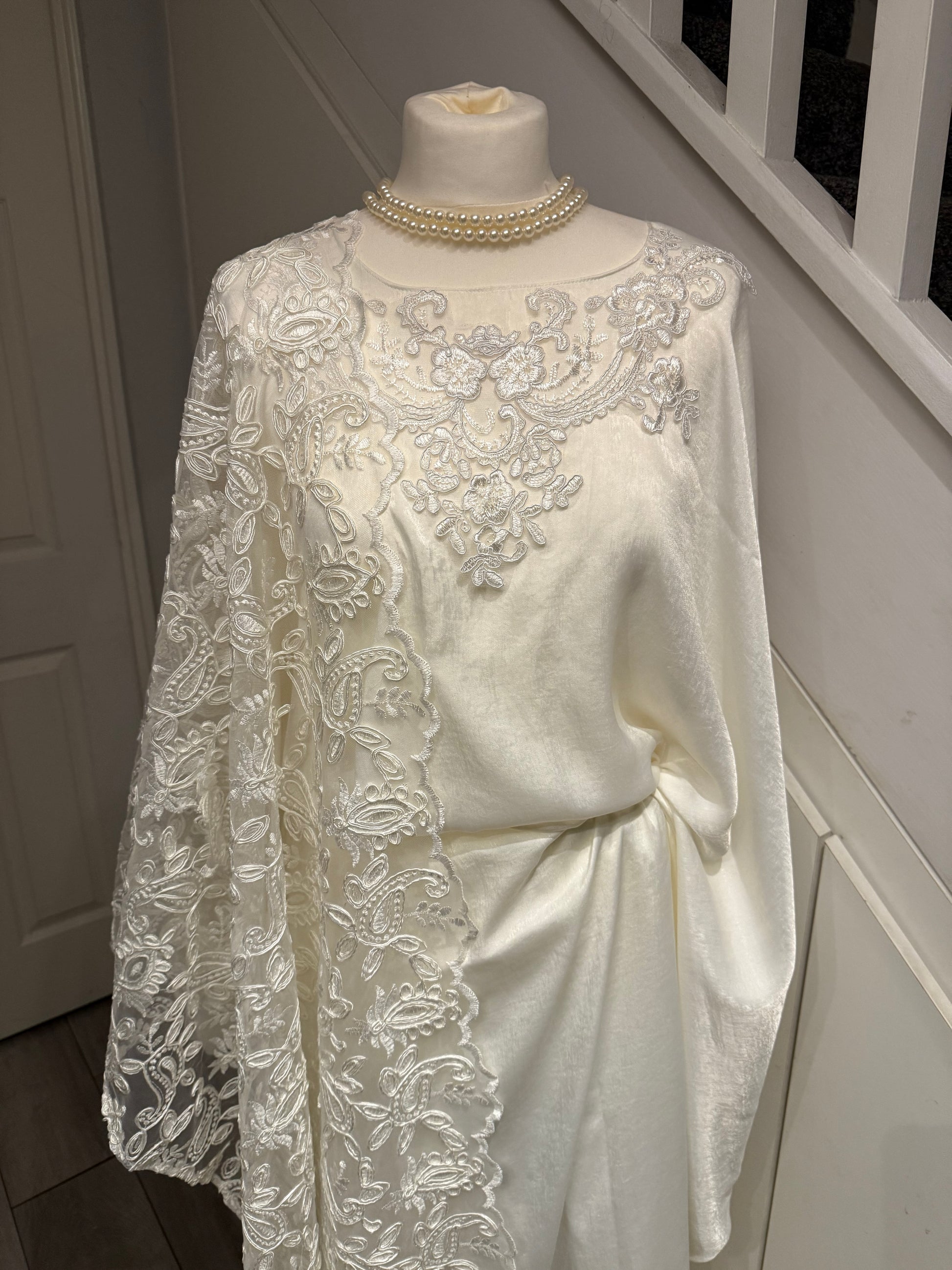 Transform into a vision of timeless elegance with this gorgeous nikkah dirac. This luxury lace nikkah dirac is perfect for those looking something understated yet classy. The material is made from a fine velvet satin fabric that is soft, non-iron and beautiful.