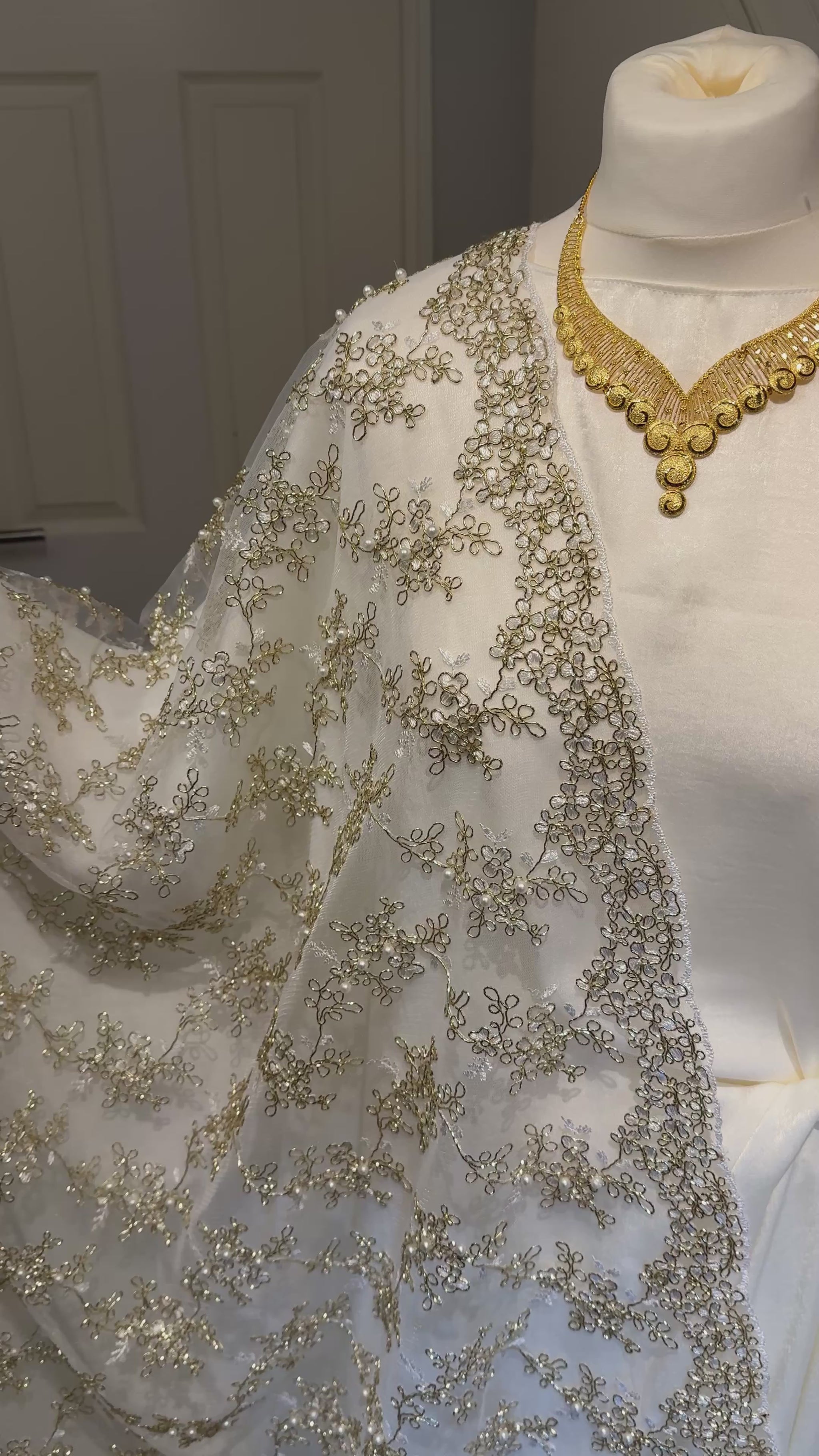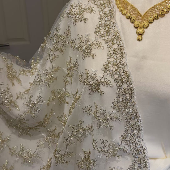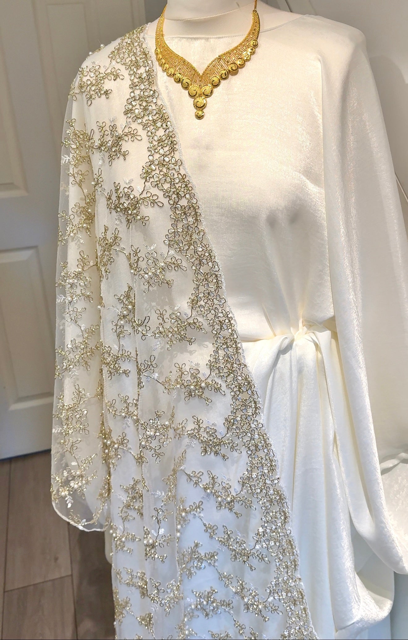 Elevate the elegance of your special occasion with our Luxury Layla Dirac. The glamour of the embellished garbasar (shawl) along with the subtle shimmer of the soft velvet satin dirac catches the light beautifully with every move.
