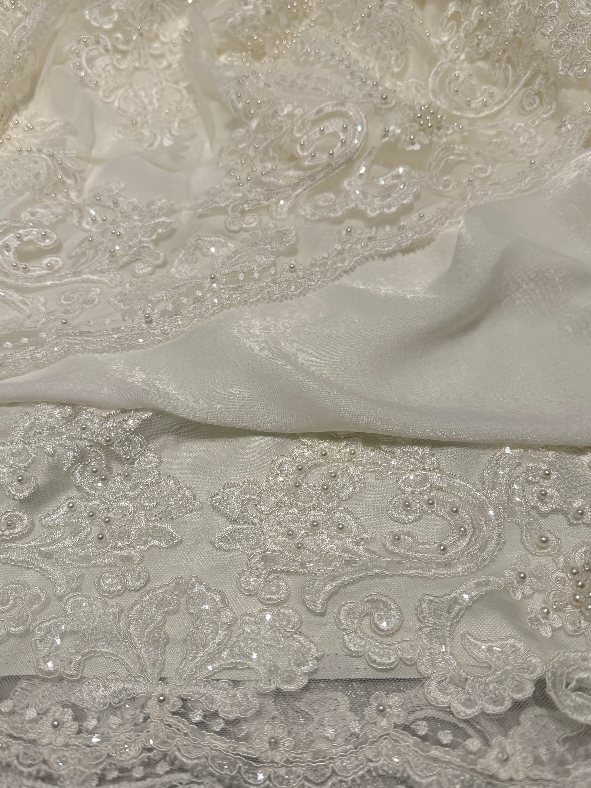 Transform into a vision of timeless elegance with this gorgeous nikkah dirac. This stunning and modest ceremonial dirac is handcrafted with intricate adornments and pearl embellishments. The material is made from a fine velvet satin fabric that is soft, non-iron and beautiful.